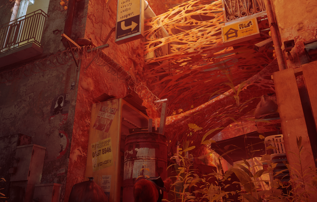 “やつら”の追跡をかわし、コツコツ進んでいくとやっとトレーラーにもあったサイバーパンク感のある街に出ます。ふえ~、、。