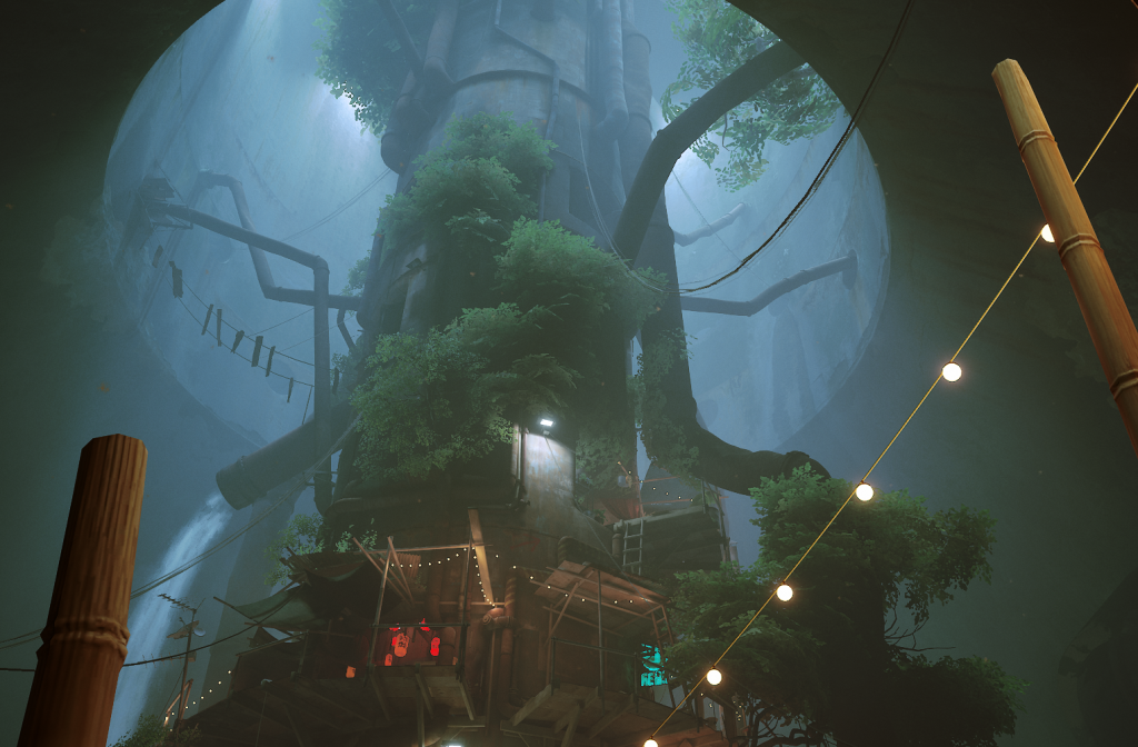 かよわいにゃんこが家族とはぐれ、地の底に落下。迷いまくっている内にスラムに到着。ふいなことから出会ったドローンと共に上へ上へと戻っていく物語。。