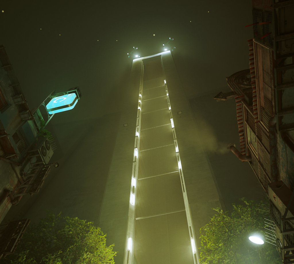 ただ、、どうやって登るのよこれ。。中層上層へのエレベータ壊れてるじゃない(下記写真左)。ということは歩き?町の外から?外には金属も有機物もなんでも食べる“やつら”がはびこってるじゃない! この有機物感、、イヤ~!キ〇イ~!!泣